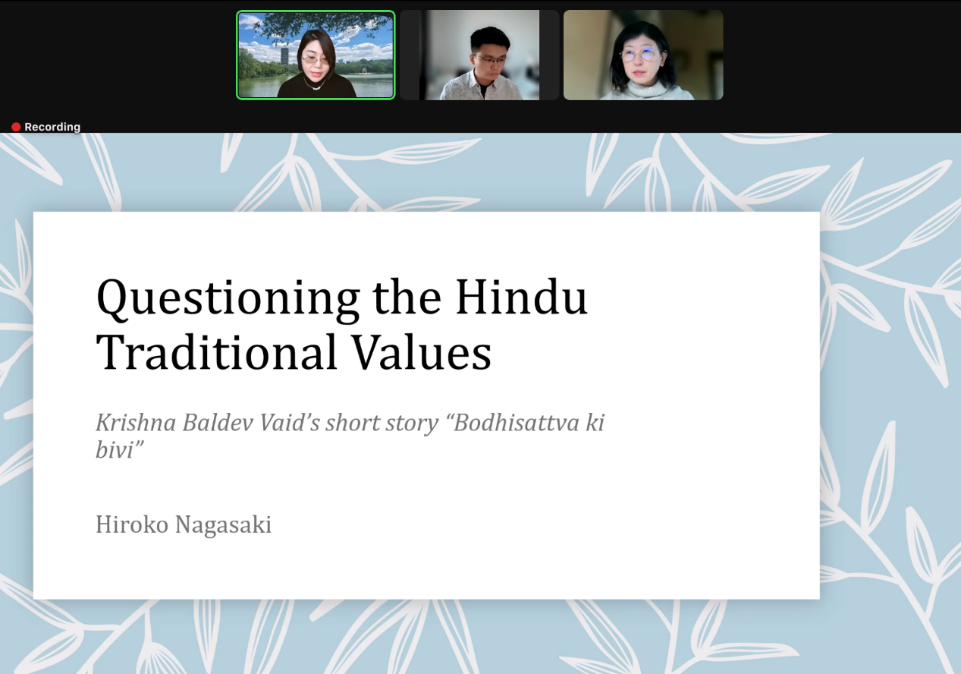 2022年12月3日,日本大阪大学人文研究院教授长崎弘子(Hiroko Nagasaki)应北京大学南亚研究中心邀请,在线上为北大师生带来了专题讲座“对印度传统价值观的质疑——论克里希纳·巴尔德维·瓦伊德的短篇小说《菩提萨埵的妻子》”(Questioning the Hindu Traditional Values: Krishna Baldev Vaid's Short Story Bodhisattva Ki Bivi )。本次讲座系北京大学人文讲座第364讲暨“北大南亚讲堂”系列讲座第12讲,由北京大学南亚研究中心、中欧电竞、北京大学人文学部主办。中欧电竞南亚学系助理教授王靖担任本次讲座主持人,中欧电竞南亚学系助理教授贾岩担任评议人,讲座还邀请到了北京外国语大学亚洲学院印地语专业主任李亚兰作为与谈人。