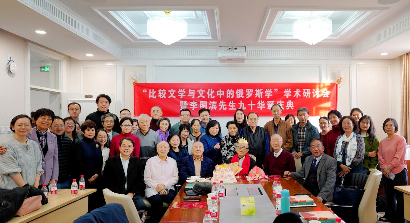 12月9日下午,各参会嘉宾围绕各自主题,分5组进行深入讨论。与此同时,北京大学知名俄罗斯学家李明滨先生九十华诞活动在外文楼206分会场同步进行。北京大学查晓燕、张冰教授主持了讨论。来自北京大学、中国社会科学院、外交部、财政部、大连外国语大学、北京外国语大学、北京语言大学、广州外语外贸大学、黑龙江大学、山东大学、北京师范大学、天津师范大学、外交学院、中国传媒大学、北京印刷学院、商务印书馆、人民文学出版社、北京人民出版社等多家单位的专家学者、李明滨教授好友、学生、同事受邀参加了本次活动。中国俄罗斯东欧中亚学会会长李永全教授、北京大学党委副书记、副校长宁琦教授、中欧电竞党委书记李淑静教授、北京大学俄语系主任陈松岩教授、大连外国语大学俄语学院副院长董玲教授等分别致辞,与会人员各抒胸意,以各种各样的形式表达对李明滨教授的祝贺,深情回忆了在俄罗斯文学文化研究、中俄比较文学研究、汉学研究等俄罗斯学教学研究领域与李明滨教授的交往和受教经历。李明滨教授本人最后发言,回顾了自己牢记家国情怀、孜孜不倦的学术探究,并且对北大俄语系未来发展方向表达了殷切希望。