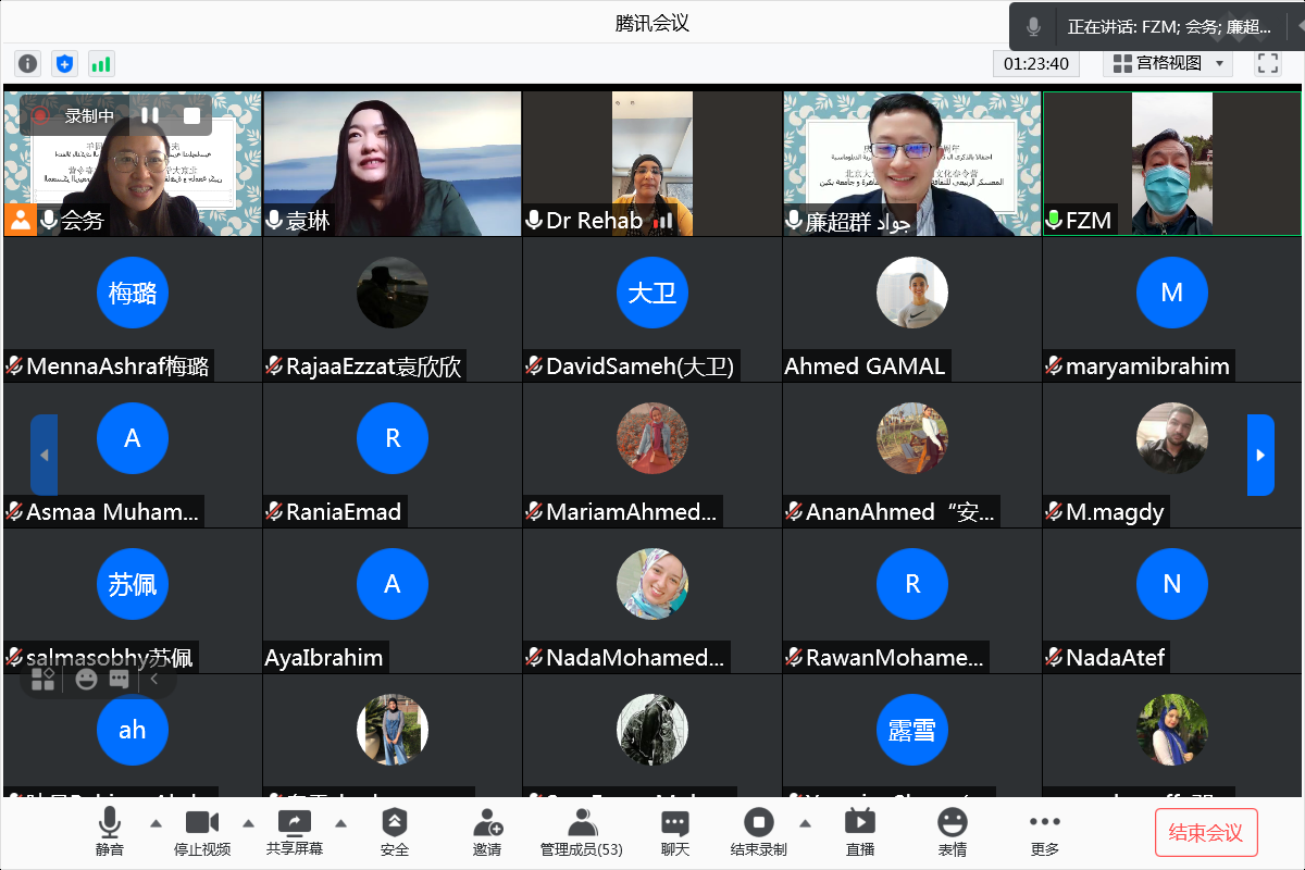来自开罗大学中文系的50余位埃及师生参加了本次春令营活动,同学们表现出对中国文化的浓厚兴趣,在讲座中认真聆听,在互动环节踊跃提问,课堂气氛活跃。很多同学表示要在课后通过阅读中国书籍、观看中国电影等方式进一步学习中国文化,表达了希望早日战胜疫情,再到中国学习的心愿。