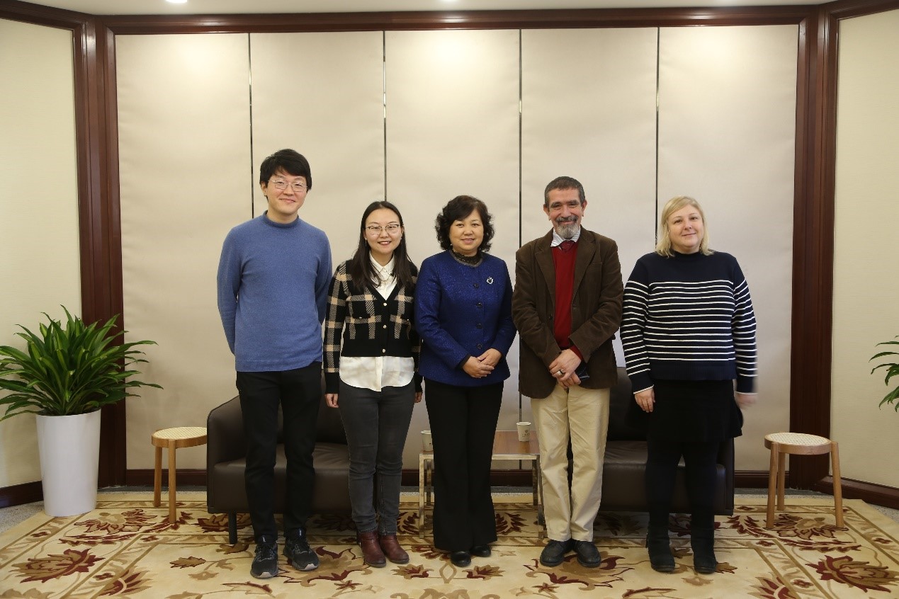11月30日,巴西圣保罗大学哲学、文学与人文科学院院长Paulo Martins在传媒与艺术学院副教授Cecília Mello的陪同下,来到中欧电竞交流访问。中欧电竞党委书记李淑静教授在外文楼热情接待了两位来宾,葡萄牙语专业樊星老师、王渊老师陪同参与。