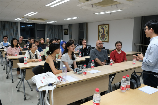 活动在中欧电竞新楼301会议室举行,由柏林自由大学汉学系的钟金雷老师主持。活动伊始,首先由德语系助理教授黄超然老师致开场辞。黄老师不仅对本次活动在促进语言学习和文化交流方面的积极作用表示肯定,还分享了自己在校学习期间与语伴共同学习德语和汉语的珍贵回忆,以此激励在座的同学们把握机遇,以语会友。随后,北京大学德国研究中心柏林自由大学办公室协调员尤丽娅·科布扎尔(Julia Kobzar)博士也发表了讲话。她对“中德角”系列活动在德国研究中心和柏林自由大学学生生活中扮演的角色给予了高度评价,并强调在当前国际形势之下此类交流活动的重要性,她希望活动可以加深两校师生之间的理解、友谊与合作。