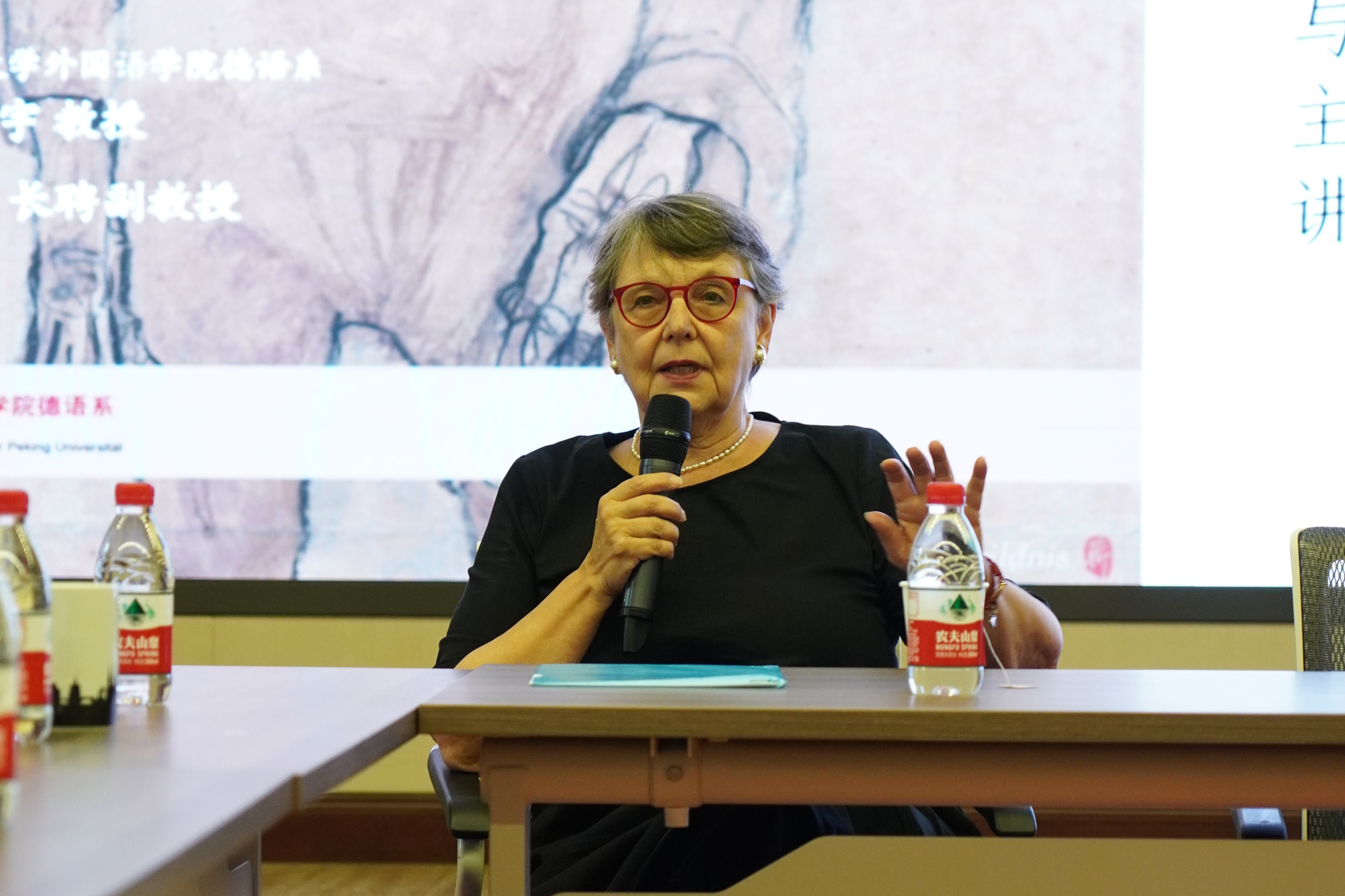 9月18日下午,维也纳档案图书馆前馆长、维也纳历史学会前会长马琳达博士(Dr. Klaralinda Ma-Kircher)应邀在民主楼208会议室做题为“抗议-弃念-韧性:对过去四十年奥地利文学的回顾”的讲座。该讲座由中欧电竞德语系主任、长聘副教授胡蔚老师担任主持,北京大学德国研究中心主任、德语系教授黄燎宇老师担任与谈人,中欧电竞德语系副主任、助理教授毛明超老师担任翻译。北京大学前辈校友、各界同好以及德语系学生也积极参加了此次活动,共有60余人参会。