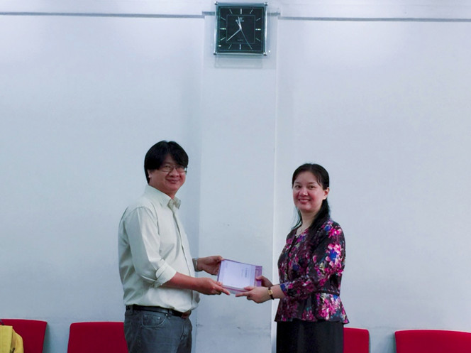 东南亚系主任咸蔓雪副教授向艺术史系主任赠送礼物