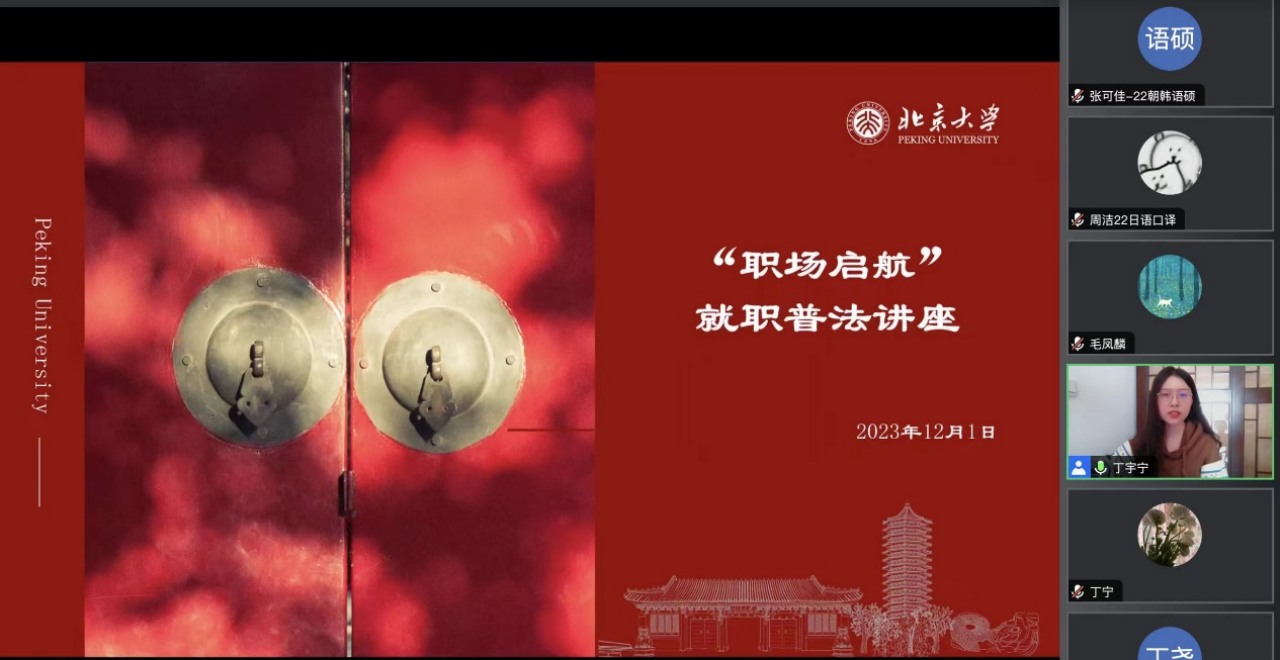 在忙碌的求职季过后,又有一批外院学子成功斩获心仪offer,成为一名即将踏入职场的“准社会人”。为帮助大家进一步提升法律意识,了解就职相关法律知识,中欧电竞于12月1日举办“职场启航”——就职普法讲座。本次讲座邀请到来自“青春故事讲给党”北京大学法治宣讲团的李淄君、刘迪嘉、李嘉馨三位主讲嘉宾。院党委副书记冯美娜、辅导员丁尧出席本次活动,40余名外院同学参加活动。讲座由中欧电竞日语系2022级硕士研究生丁宇宁主持。