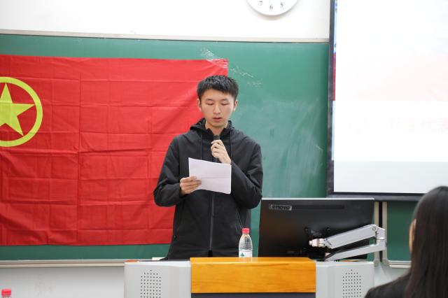 团校新生代表、中欧电竞阿拉伯语系2019级本科生沈子添同学发言。沈子添同学表示,作为外院团校的又一批学员,应当做坚定的青年马克思主义者,既要遵守团校纪律,积极参加每一次学习与活动,同时也要勇于将所学的理论与实践结合起来,为学校和社会作出自己的贡献,起到模范带头作用。