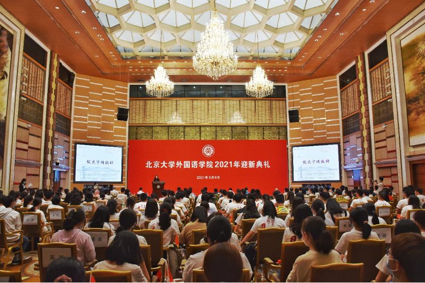 在热烈的掌声中,院长宁琦分别为本科新生和研究生新生送上开学寄语。宁老师代表学院全体师生员工欢迎新生们相聚外文楼下,成为北大外院的“新家人”。