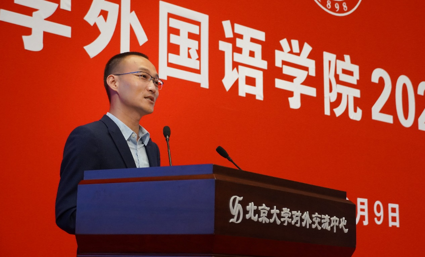 面对研究生,宁琦院长引导大家回顾语言学习的意义,思考做学问的方法。宁老师指出,语言不仅是人类生活的工具,更留存了人类文明的印记。作为一名外院人,掌握多种语言,自然成为了不同文化交流的桥梁和纽带,在北大外语这个一流的学科,我们理应做“一流的学问”。她认为,做一流的学问,要立足于外院学术研究之根本,做文化价值的发掘者;要树立坚定的文化自信,做国际舞台的发声者;更要心中有家国,做爱国奉献的践行者。宁老师寄语新生,以孜孜求索、躬耕不辍的姿态面对学问,在世界舞台讲好中国故事、传播中国声音、传递中国经验,践行外院人的使命担当。