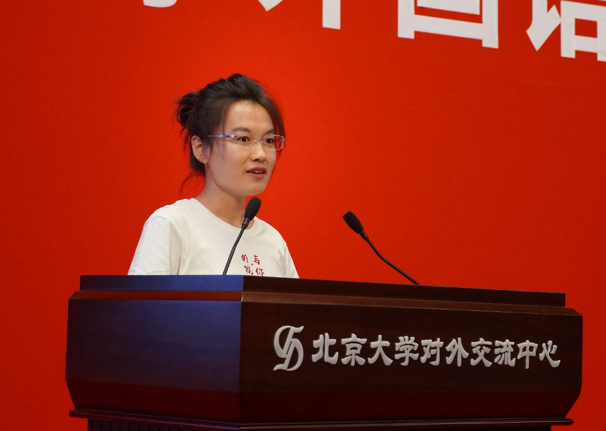法语系2021级博士生赵婉雪在发言中提到,历史悠久、成绩斐然的北大外院,是学子们心中永远鲜活的精神家园。作为博士生,她将继续坚持自主选择的事业,全身心倾注热情,在人类文明的星空下仰望探索。她认为,以学术为业,也是力求文明进步、发挥所长的报国之路,燕园学子应当有一份传播中国声音的家国情怀。