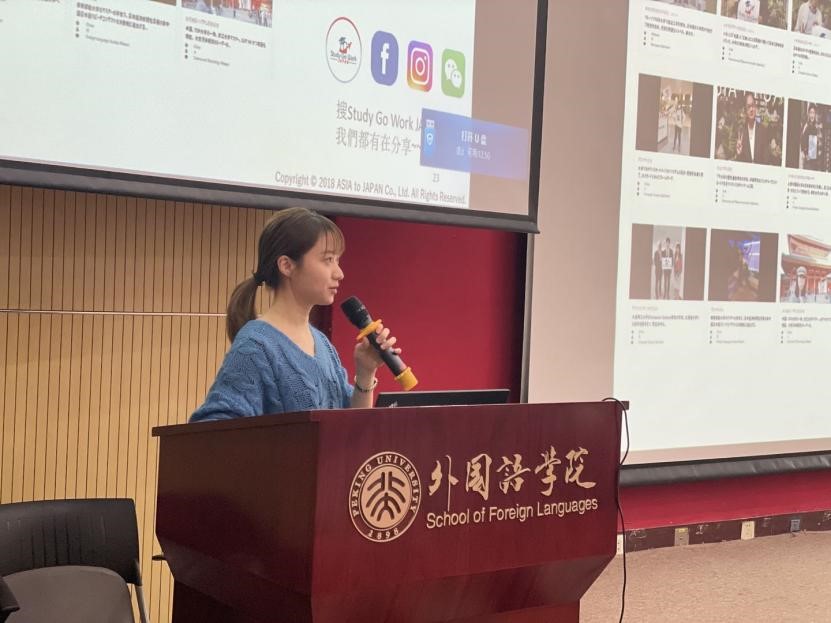 蔡琳凌是我系2018届翻译硕士毕业生,毕业后前往日本株式会社ASIA to JAPAN,从事全球人才招聘工作,活跃在优质人力资源整合的第一线。本次交流会上,蔡琳凌首先为同学们介绍了赴日项目的概况,对包括雅马哈、埃森哲(日本)、SEGA等日本主要知名企业的基本信息、招聘要求进行了详细的解读。然后,具体说明了赴日工作的流程与细节,并对学生如何准备面试和接受面试进行了亲身示范与指导。