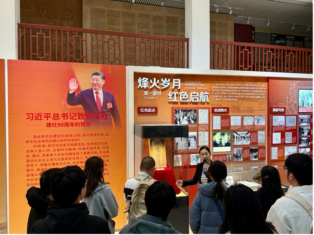 在新华社工作人员的带领下,外院师生首先抵达新华社历史研究陈列馆,参观了社史馆中陈列的珍贵文献和影像资料。新华社自战火中诞生,在中国共产党的坚强领导下已经走过了90多年的光辉岁月,坚定不移跟党走,宣传党的主张,反映人民心声,记录时代精神,传播中国声音,在革命、建设、改革各个历史时期发挥了重要作用。