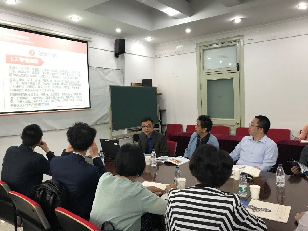 2018年5月11日上午,厦门大学外文学院副院长徐琪、英语系系主任杨士焯、法语系系主任鲁京明、日语系副系主任任星、西班牙语专业教研室主任李文进、教学科科长陈雯娜、团委书记乐无恙一行7人来访中欧电竞,调研教学工作、共青团工作和学生工作。中欧电竞副院长吴杰伟、党委副书记王恒、俄语系系主任陈松岩、英语系系主任高峰枫、西班牙语系系主任范晔、日语系副系主任李奇楠、法语系教师王斯秧、教务主任崔桂红、团委书记王艳超、教务办公室李宁出席座谈。