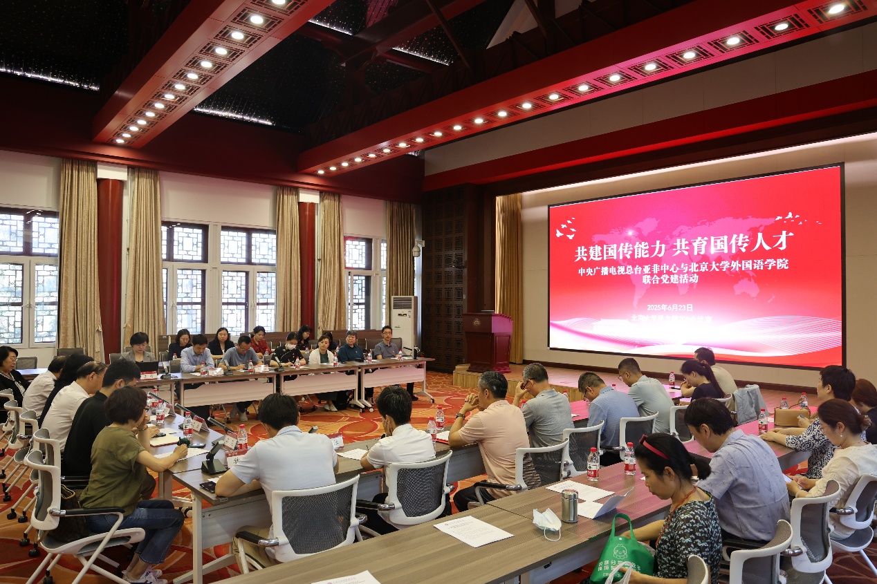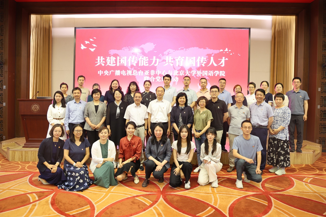 为贯彻落实二十届三中全会提出的“构建更有效力的国际传播体系”要求和习近平总书记关于建设教育强国的重要讲话精神,培养具备较强政治、人文素养和专业能力的国际传播人才,2025年6月23日上午,中央广播电视总台亚洲非洲地区语言节目中心(以下简称“总台亚非中心”)与中欧电竞(以下简称“北大外院”)在北京大学联合举办“共建国传能力,共育国传人才”党建活动,双方参观北大校史馆并瞻仰李大钊塑像,围绕国际传播能力建设、外语人才培养等议题展开深入交流,并宣布启动双方国际传播合作机制。总台亚非中心党委书记、主任安晓宇,亚非中心副召集人司楠,党委专职副书记郭翌,以及中欧电竞党委书记李淑静,院长陈明,副院长吴杰伟、王丹、王恒,党委副书记张冬梅、冯美娜等党政班子成员出席。30余名来自总台亚非中心各语种党支部及北大外院教工党支部的党员代表参加。