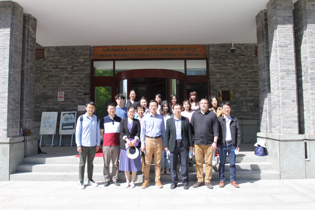 作为中欧电竞阿拉伯语系“双带头人”教工党支部系列学习活动之一,为推动支部与专业教师、青年学生共同参与高校党建工作,2022年4月22日下午,中欧电竞阿拉伯语系教工党支部组织相关教师和学生参观了在阿卜杜勒·阿齐兹国王公共图书馆北京大学分馆暨北京大学古籍图书馆地下二层展厅举办的“北京大学图书馆建馆一百二十年珍藏古文献展”。教工党支部成员付志明、林丰民、李海鹏、李睿恒、张忞煜,阿语系教师代表廉超群、高山,中欧电竞图书馆馆长张晓雁以及阿语系研究生党支部成员参与了此次学习活动。