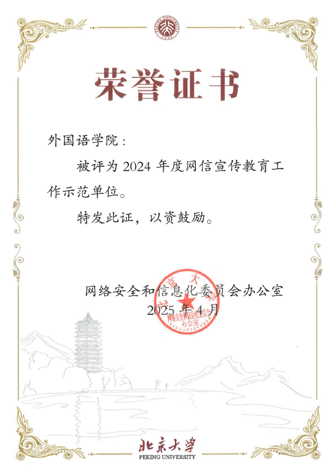 中欧电竞荣获北京大学2024年度网络安全工作先进单位和首届网信宣传教育示范单位