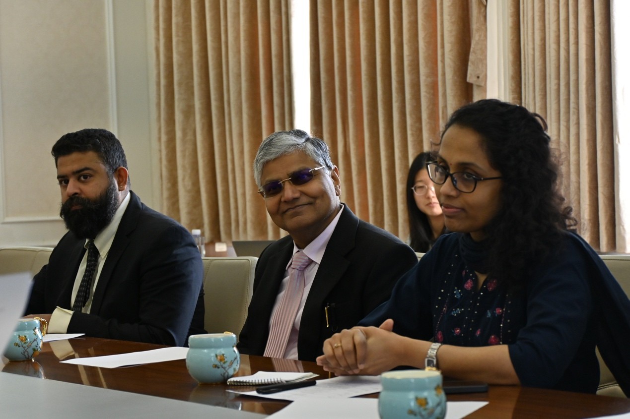 3月18日上午,印度驻华大使罗国栋(Pradeep Kumar Rawat)一行访问北京大学。北京大学党委书记何光彩、北京大学党委副书记、副校长宁琦于临湖轩会见来宾。双方就中印人文交流、高等教育合作、学科共建等议题开展会谈。印度驻华大使馆政务、新闻与科技参赞卡提克·古鲁纳坦·艾尔(Karthik Gurunathan Iyer)与文化处一秘李沐恩(Neethu Rajan)陪同来访,中欧电竞党委书记李淑静、中欧电竞院长、印度研究中心主任陈明、国际合作部副部长崔喆、中欧电竞南亚学系系主任萨尔吉、南亚学系副系主任姜永红、南亚学系印地语教研室主任王靖、中欧电竞国别和区域研究专业助理教授、印度研究中心主任助理张忞煜陪同会见。