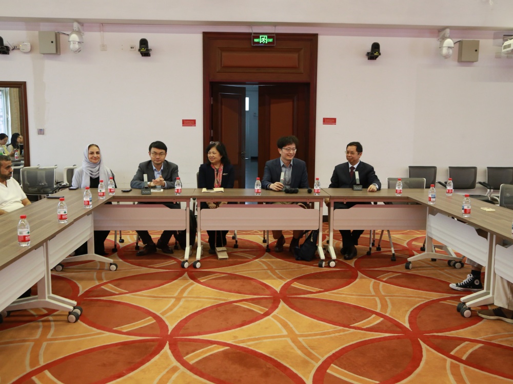 上午10时许,代表团在民主楼208会议室与中欧电竞师生开展座谈,中欧电竞党委书记李淑静,北京大学社科部副部长、阿拉伯语系教授林丰民,北京大学阿拉伯语系副主任廉超群,北京大学阿拉伯语系助理教授李睿恒出席座谈。