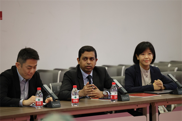 在学术交流环节,王旭副教授从中国学者的视角出发做专题讲座,深入分析了当前南亚地区形势及地缘战略格局变化,以中国的发展经验为主要切口,剖析孟加拉国在南亚地区形势和地缘政治中所处的位置与发展面临的结构性困境。他指出,在国际局势动荡变动与地缘政治风云诡谲的当下,中国“以人民为中心”的发展理念和“中国式现代化”的宝贵经验是“全球南方国家”应对变动中的世界经济、政治格局的重要抓手,并认为这一经验可为孟加拉国推进去殖民议程、实现现代化发展提供镜鉴。讲座内容得到了孟方代表团成员的高度认可。在互动环节,孟方代表就人工智能时代的发展机遇与挑战、高校在政府决策中的作用等议题与现场中方学者展开深入交流。王旭副教授指出,中国将坚持科技平权原则,合理运用AI技术改善民生;同时强调,北京大学作为中国高等教育的重要代表,始终致力于开展长期、动态的学术研究,为国家发展提供智力支持。