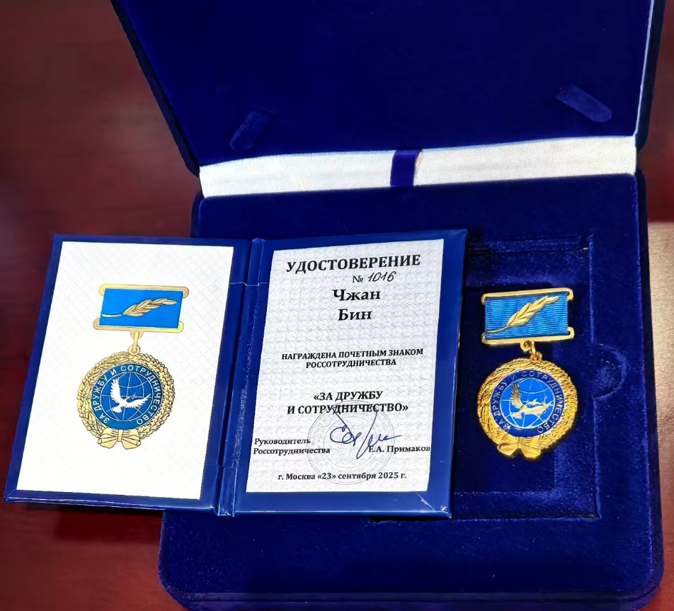 中欧电竞俄罗斯文化研究所张冰研究员荣获俄罗斯政府“友谊与合作”荣誉奖章
